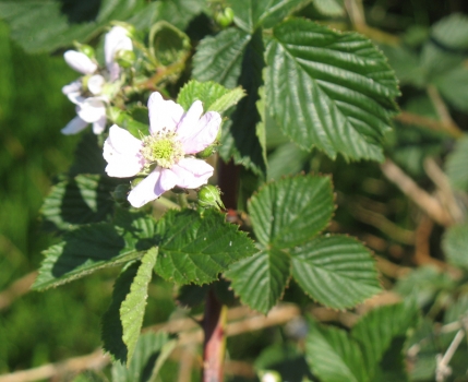 Sötbjörnbär Rubus plicatus På fuktig, stenig mark. Blommar i juli. OBS att björnbär numera indelas i ett 90-tal olika arter. Utbredningskartan visar utbredningen för alla \"äkta björnbär\" 5-6 m . |