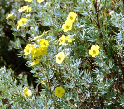 Tok (Ölandstok) Potentilla fruticosa Odlad och ibland kvarstående. Blommar i juni-september. 0,5-1,5 m |