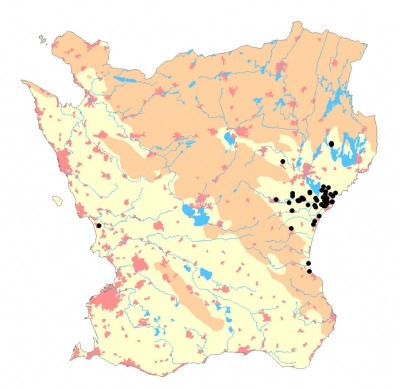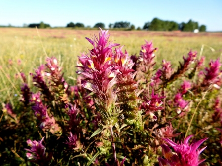 Pukvete Melampyrum arvense Sällsynt på torr kalkhaltig sandjord. Karakteristisk för Åhustrakten. Blommar i juni-augusti. 15-30 cm |