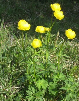 Smörbollar Trollius europeus På fuktig, kalkhaltig näringsrik ängsmark. Har minskat mycket i våra trakter. Blommar i maj-juli. 20-70 cm |