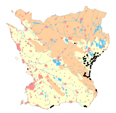 Fältsippa Pulsatilla pratensis På öppen kalkrik sandmark på betesmarker och hedar. Blommar i april-maj. 5-25 cm |